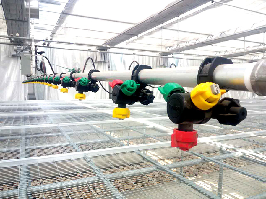 蔬菜集約化育苗裝備及技術(shù)采用配套苗床、軌道式噴灌系統(tǒng)、環(huán)流系統(tǒng)、優(yōu)質(zhì)基質(zhì)、補(bǔ)光系統(tǒng)等設(shè)施設(shè)備,并通過嚴(yán)格的溫濕光系統(tǒng)環(huán)境控制從而達(dá)到育苗生產(chǎn)的標(biāo)準(zhǔn)化、產(chǎn)業(yè)化生產(chǎn)。